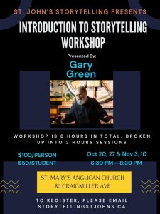 $100 pp or $50 for students. To register, please email storytellingstjohns@gmail.com.