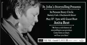 St. John’s Storytelling invites you to join us for our May Story Circle at the Battery Cafe. $5 cover, get there early to get a seat!